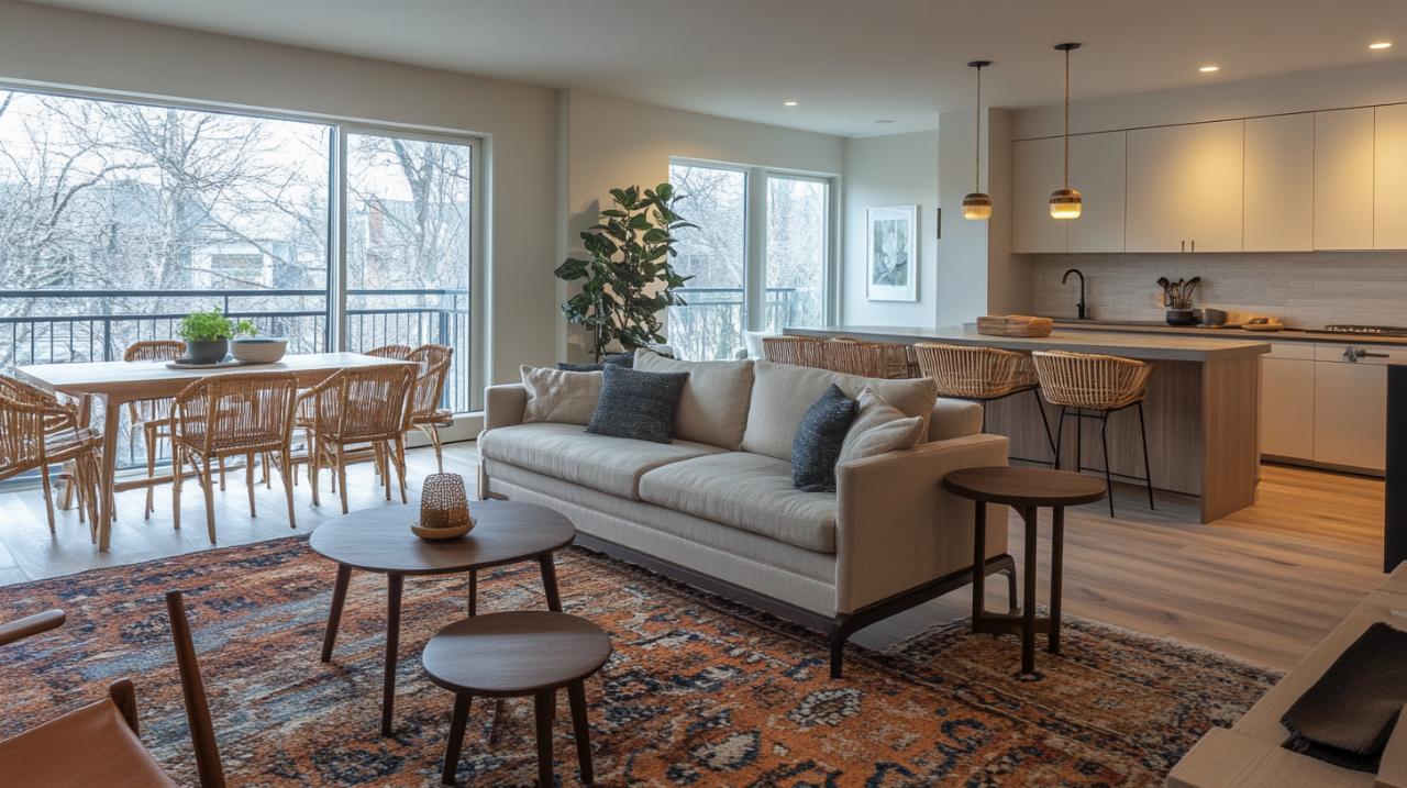 Creating distinct zones within an open-plan space requires subtlety and restraint. Heavy partitions or rigid dividers can fragment the room, undermining the very openness that makes combined spaces appealing. Instead, employ softer methods such as area rugs, which visually anchor each zone without erecting barriers. A large rug under the dining table and another beneath the coffee table in the living area delineate the two functions whilst maintaining a sense of continuity. Flooring consistency also matters. Using the same material throughout the space avoids the disjointed appearance that multiple floor types can introduce. If you wish to add variety, consider subtle shifts in colour or texture rather than dramatic changes. Wood tones, for example, can be echoed across both zones, creating a warm, unified backdrop. Furniture arrangement itself becomes a zoning tool. Positioning the sofa perpendicular to the dining area, rather than facing it directly, establishes a psychological boundary. Similarly, a low bookcase or sideboard placed behind the sofa can act as a gentle divider, offering storage and display space whilst preserving sightlines. Colour schemes should balance cohesion with distinction. A neutral palette forms a versatile foundation, allowing you to introduce accent colours that tie the zones together. Matching shades in cushions, artwork, or tableware can create visual links, whilst avoiding overwhelming the senses. Built-in shelving or architectural features such as alcoves provide natural division points. If your space includes these elements, embrace them rather than working against the room's inherent structure. They offer opportunities to define areas without resorting to artificial barriers. Ultimately, the goal is to create a space that feels unified yet purposeful. Each zone should support its intended function without competing for dominance, allowing the room to serve multiple roles with grace and efficiency.